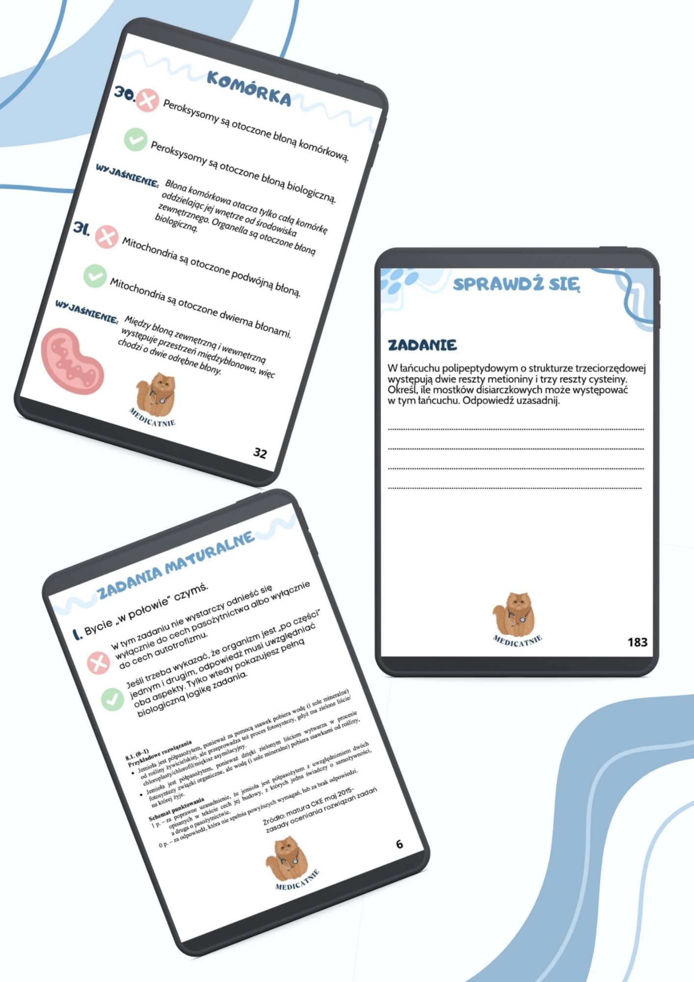 Treść e-booka opracowałam nie tylko na podstawie wymagań maturalnych i typowych pułapek biologicznych, ale również na podstawie analizy kilku tysięcy rozwiązań zadań maturalnych moich byłych uczniów. Jeśli jakiś błąd, nawet typowo teoretyczny, wielokrotnie pojawiał się u innych osób w trakcie nauki, istnieje duża szansa, że może pojawić się także u kolejnych uczniów.